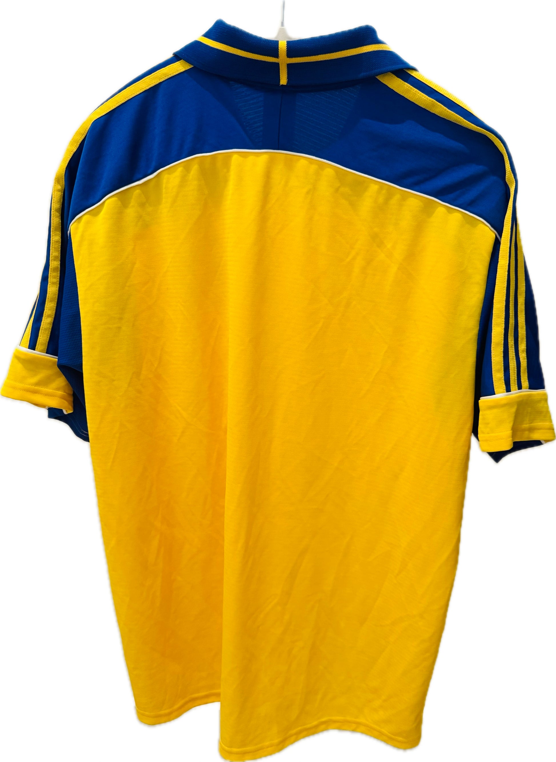 This is a Sweden national team home jersey from the 2002 World Cup era, manufactured by Adidas.