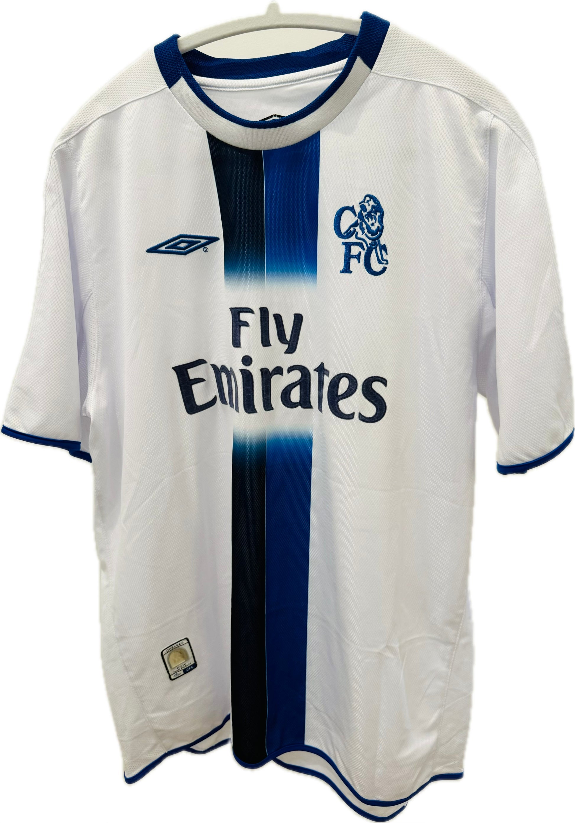 This is a Chelsea FC away jersey from the 2003–04 season, made by Umbro and sponsored by Fly Emirates.